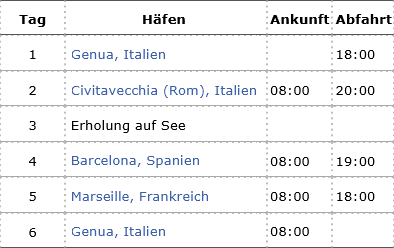 Barcelona (Spanien) Am nächsten Tag erreichen Sie die sonnige spanische Küste, wo der Hafen von Barcelona in den Morgenstunden angelaufen wird. Heute werden Sie von der spanischen Küstenmetropole Barcelona empfangen, die sich vom Meer aus sanft an Hügeln hinaufzieht und von schönen Sandstränden umgeben wird. Barcelona ist mit 1.6 Millionen Einwohnern die zweitgrößte Stadt Spaniens und die Hauptstadt Kataloniens. Die wunderschöne und lebhafte Architekturmetropole Barcelona ist von einem Küstengebirge umgeben, das eine einzigartige Kulisse bildet. Vom 512 m hohem Hausberg Tibidabo, auf dem auch der Fernsehturm steht und den Sie gemütlich mit der Standseilbahn erklimmen können, haben Sie einen wunderschönen Panoramablick auf Barcelona und das Mittelmeer.