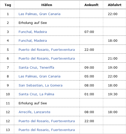 Kreuzfahrt Große Kanaren-Rundreise & Madeira: Gran Canaria, Madeira, Fuerteventura, Teneriffa, Gran Canaria, La Gomera, La Palma, Lanzarote, Fuerteventura