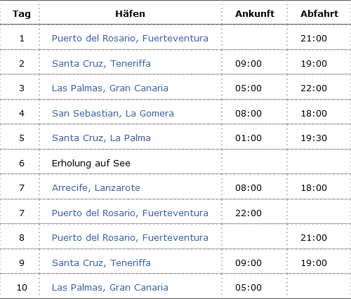 Kreuzfahrt Kanarische Inselwelt ab Fuerteventura: Fuerteventura, Teneriffa, Gran Canaria, La Gomera, La Palma, Lanzarote, Fuerteventura, Teneriffa, Gran Canaria