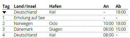 Kiel (Deutschland) Der neue Kieler Kreuzfahrtterminal ist das Tor zur Stadt und Region Kiel, die mit der Kieler Fjorde, den nahen Ostseestränden und dem Nord-Ostsee-Kanal einige schöne Ausflugsziele bietet. Der Terminal liegt zentral in der Stadtmitte nur wenige Meter vom Hauptbahnhof entfernt und von dort aus lassen sich schöne Spaziergänge durch die schleswig-holsteinische Hauptstadt und ihren schönen Fähr-, Segel- und Kreuzfahrthafen unternehmen. |