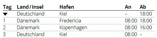 Kiel (Deutschland) Der neue Kieler Kreuzfahrtterminal ist das Tor zur Stadt und Region Kiel, die mit der Kieler Fjorde, den nahen Ostseestränden und dem Nord-Ostsee-Kanal einige schöne Ausflugsziele bietet. Der Terminal liegt zentral in der Stadtmitte nur wenige Meter vom Hauptbahnhof entfernt und von dort aus lassen sich schöne Spaziergänge durch die schleswig-holsteinische Hauptstadt und ihren schönen Fähr-, Segel- und Kreuzfahrthafen unternehmen. |