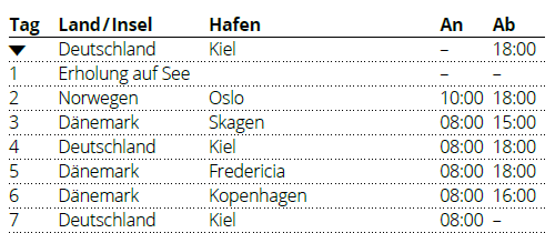 Kreuzfahrt Skandinavien mit Oslo ab Kiel: Kiel (Deutschland), Oslo (Norwegen), Skagen (Dänemark), Kiel (Deutschland), Fredericia (Dänemark), Kopenhagen (Dänemark), Kiel (Deutschland)