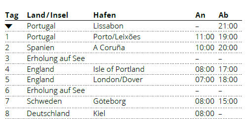 Kreuzfahrt Westeuropa: Lissabon (Portugal), Porto (Portugal), A Coruna (Spanien), Isle of Portland (England), Dover (England), Göteborg (Schweden), Kiel