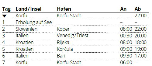 Kreuzfahrt Adria ab Korfu 2: Insel Korfu, Koper (Slowenien), Triest (Italien), Rijeka (Kroatien), Korcula (Kroatien), Bari (Italien), Insel Korfu