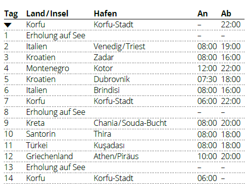 Kreuzfahrt Adria & Griechenland ab Korfu 3: Insel Korfu, Triest (Italien), Zadar (Kroatien), Kotor (Montenegro), Dubrovnik (Kroatien), Brindisi (Italien), Korfu (Griechenland), Souda Bay (Kreta), Insel Santorin, Kusadasi (Türkei), Athen (Griechenland), Insel Korfu