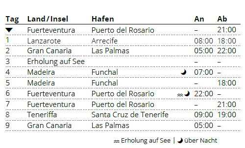 Kreuzfahrt Kanarische Inselwelt & Madeira: Puerto del Rosario (Fuerteventura), Arrecife (Lanzarote), Las Palmas (Gran Canaria), Funchal (Madeira), Puerto del Rosario (Fuerteventura), Santa Cruz (Teneriffa), Las Palmas (Gran Canaria)