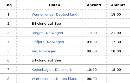 Kreuzfahrt Norwegens Fjorde ab Warnemünde: Warnemünde, Bergen (Norwegen), Eidfjord (Norwegen), Vik (Norwegen), Kopenhagen (Dänemark), Warnemünde
