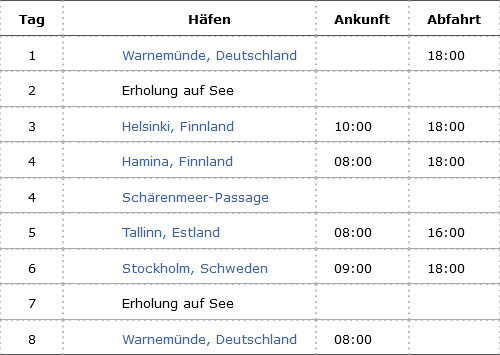 Kreuzfahrt Ostsee ab Warnemünde mit Hamina: Warnemünde, Helsinki (Finnland), Hamina (Finnland), Tallinn (Estland), Stockholm (Schweden), Warnemünde