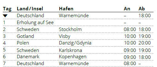 Kreuzfahrt Schweden, Polen & Dänemark ab Warnemünde: Warnemünde (Deutschland), Stockholm (Schweden), Visby (Insel Gotland), Danzig (Polen), Karlskrona (Schweden), Kopenhagen (Dänemark), Warnemünde (Deutschland)