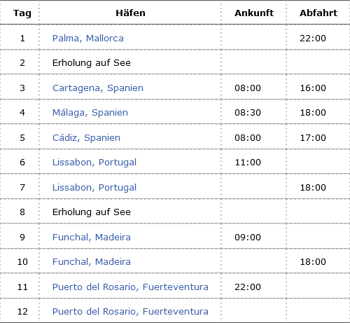 Kreuzfahrt Andalusien, Portugal & Fuerteventura ab Mallorca: Palma de Mallorca, Cartagena (Spanien), Malaga (Spanien), Cadiz (Spanien), Lissabon (Portugal), Funchal (Madeira), Puerto del Rosario (Fuerteventura)