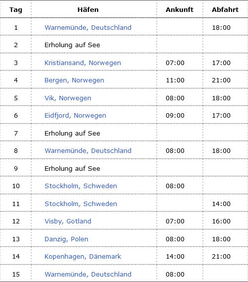 Kreuzfahrt Highlights der Nord- und Ostseeküste 1: Warnemünde, Kristiansand (Norwegen), Bergen (Norwegen), Vik (Norwegen), Eidfjord (Norwegen), Warnemuende, Stockholm (Schweden), Visby (Gotland), Danzig (Polen), Kopenhagen (Dänemark), Warnemuende