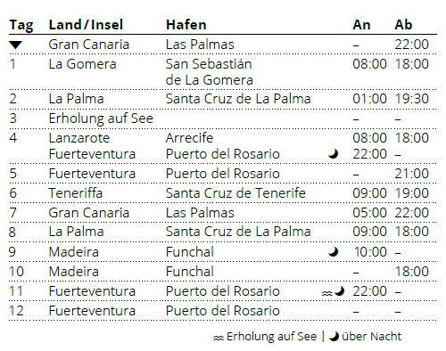 Kreuzfahrt Große Rundreise Kanaren & Madeira: Gran Canaria, La Gomera, La Palma, Lanzarote, Fuerteventura, Teneriffa, Gran Canaria, La Palma, Madeira, Fuerteventura
