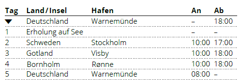 Kreuzfahrt Kurzreise nach Schweden ab Warnemünde: Warnemünde, Stockholm (Schweden), Visby (Insel Gotland), Ronne (Insel Bornholm), Warnemünde