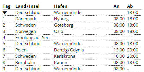 Kreuzfahrt Schweden & Dänemark mit Polen ab Warnemünde: Warnemünde, Nyborg (Dänemark), Göteborg (Schweden), Oslo (Norwegen), Warnemünde, Danzig (Polen), Karlskrona (Schweden), Insel Bornholm, Warnemünde