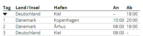 Kiel Der neue Kieler Kreuzfahrtterminal ist das Tor zur Stadt und Region Kiel, die mit der Kieler Fjorde, den nahen Ostseestränden und dem Nord-Ostsee-Kanal einige schöne Ausflugsziele bietet. Der Terminal liegt zentral in der Stadtmitte nur wenige Meter vom Hauptbahnhof entfernt und von dort aus lassen sich schöne Spaziergänge durch die schleswig-holsteinische Hauptstadt und ihren schönen Fähr-, Segel- und Kreuzfahrthafen unternehmen. |