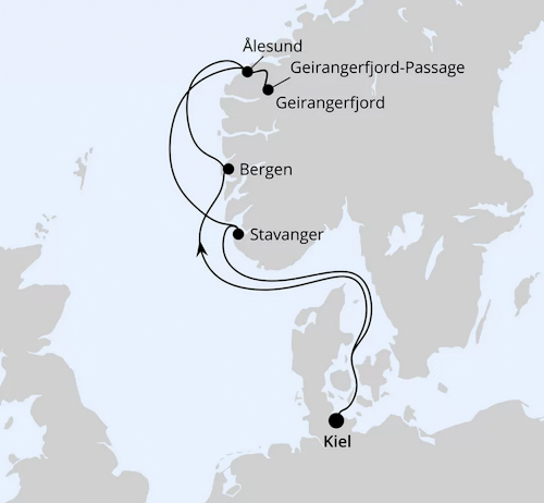 Kreuzfahrt Norwegens Welterbe ab Kiel mit Geirangerfjord: Kiel, Bergen (Norwegen), Alesund (Norwegen), Geiranger (Norwegen), Stavanger (Norwegen), Kiel