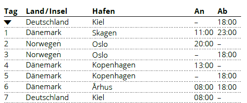 Kreuzfahrt Skandinavische Highlights ab Kiel: Kiel (Deutschland), Skagen (Dänemark), Oslo (Norwegen), Kopenhagen (Dänemark), Arhus (Dänemark), Kiel (Deutschland)
