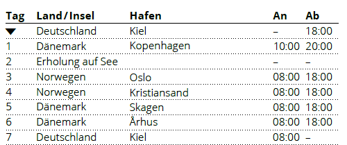 Kreuzfahrt Skandinavische Highlights ab Kiel: Kiel (Deutschland), Kopenhagen (Dänemark), Oslo (Norwegen), Kristiansand (Norwegen), Skagen (Dänemark), Arhus (Dänemark), Kiel (Deutschland)