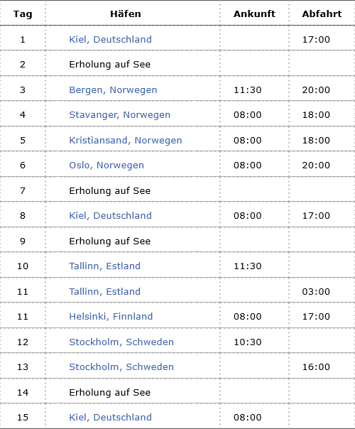 Kreuzfahrt Ostsee & Südnorwegen ab Kiel: Kiel (Deutschland), Bergen (Norwegen), Stavanger (Norwegen), Kristiansand (Norwegen), Oslo (Norwegen), Kiel (Deutschland), Tallinn (Estland), Helsinki (Finnland), Stockholm (Schweden), Kiel (Deutschland)