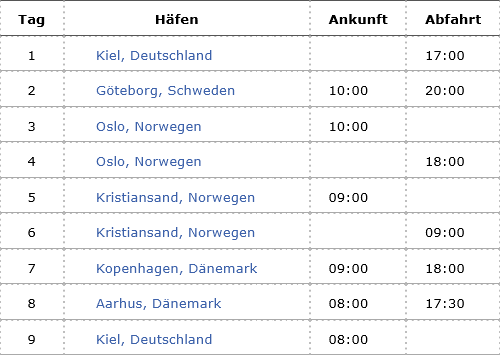 Kreuzfahrt Silvesterreise nach Norwegen & Dänemark ab Kiel 1: Kiel (Deutschland), Göteborg (Schweden), Oslo (Norwegen), Kristiansand (Norwegen), Kopenhagen (Dänemark), Arhus (Dänemark), Kiel (Deutschland)