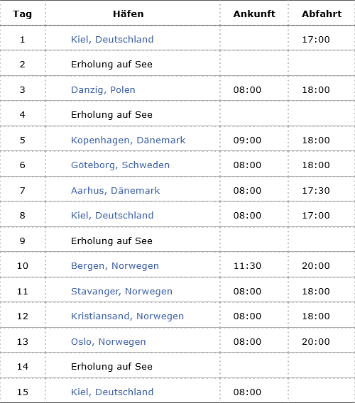 Kreuzfahrt Skandinavien & Polen ab Kiel 2: Kiel (Deutschland), Danzig (Polen), Kopenhagen (Dänemark), Göteborg (Schweden), Arhus (Dänemark), Kiel (Deutschland), Bergen (Norwegen), Stavanger (Norwegen), Kristiansand (Norwegen), Oslo (Norwegen), Kiel (Deutschland)
