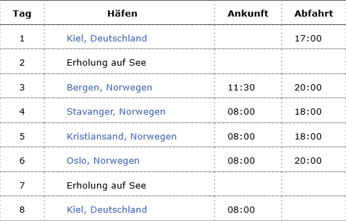 Kreuzfahrt Südnorwegen ab Kiel: Kiel (Deutschland), Bergen (Norwegen), Stavanger (Norwegen), Kristiansand (Norwegen), Oslo (Norwegen), Kiel