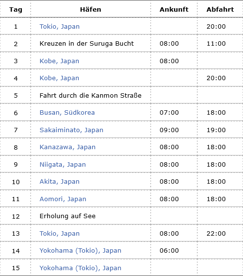 Kreuzfahrt Große Japan-Rundreise zur Frühlingsblüte 2: Tokio (Japan), Kobe (Japan), Busan (Südkorea), Sakaiminato (Japan), Kanazawa (Japan), Niigata (Japan), Akita (Japan), Aomori (Japan), Tokio, Yokohama-Tokio (Japan)