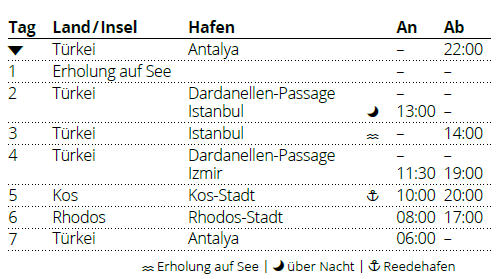 Kreuzfahrt Östliches Mittelmeer mit Istanbul: Antalya (Türkei), Istanbul (Türkei), Izmir (Türkei), Insel Kos, Insel Rhodos, Antalya (Türkei)