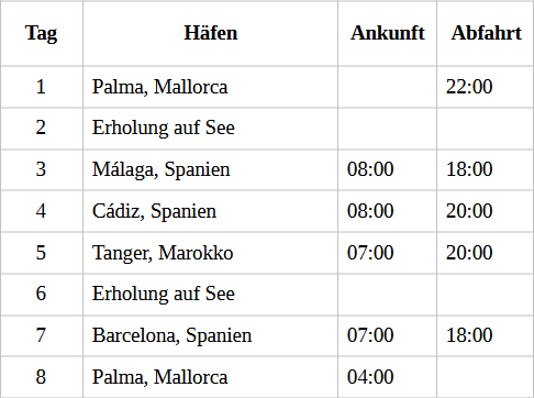 Kreuzfahrt Faszination Mittelmeer: Palma de Mallorca, Malaga (Spanien), Cadiz (Spanien), Tanger (Marokko), Barcelona (Spanien), Palma de Mallorca