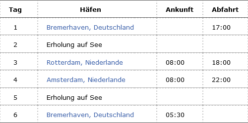 Kreuzfahrt Kurzreise Holland: Bremerhaven, Rotterdam (Niederlande), Amsterdam (Niederlande), Bremerhaven