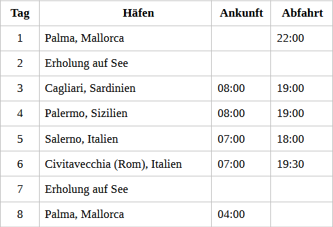 Kreuzfahrt Italien - La Dolce Vita: Palma de Mallorca, Cagliari (Sardinien), Palermo (Sizilien), Salerno (Italien), Civitavecchia-Rom (Italien), Palma de Mallorca