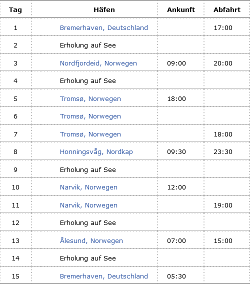 Genießen Sie auf unserer 14-tägigen Nordland-Kreuzfahrt an Bord der Mein Schiff 3 Entspannung pur. Neben vielfältigen Häfen und Städten und der einmaligen Natur der norwegischen Fjorde, können Sie sich auf insgesamt fünf Seetage an Bord unseres Wohlfühlschiffes freuen. Lassen Sie sich verwöhnen und genießen Sie unser Premium Alles Inklusive-Konzept in vollen Zügen, den viele Leistungen sind bereits im Reisepreis inkludiert. Während dieser Nordland-Kreuzfahrt werden Sie das Nordkap, Alesund, den Nordfjord, Tromsö und Narvik besuchen und viele unvergessliche Erinnerungen mit nach Hause nehmen.