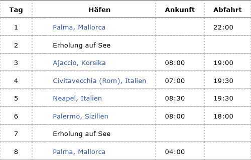 Kreuzfahrt Frühlingserwachen im Mittelmeer: Palma de Mallorca, Ajaccio (Korsika), Civitavecchia (Rom), Neapel (Italien), Palermo (Sizilien), Palma de Mallorca