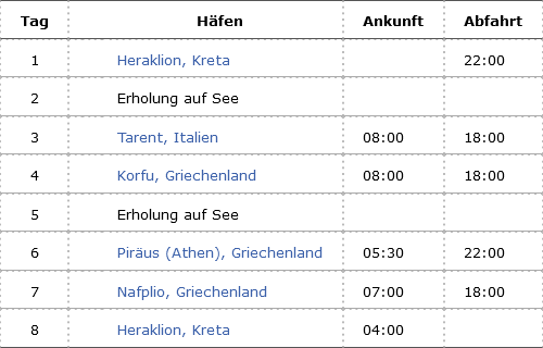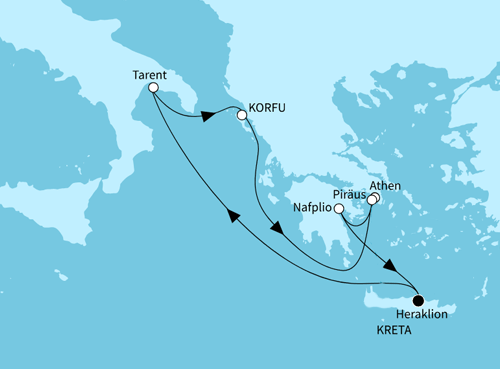 Kreuzfahrt Vielfalt des Östlichen Mittelmeers: Heraklion (Kreta), Tarent (Italien), Insel Korfu (Griechenland), Athen (Griechenland), Nafplio (Griechenland), Heraklion (Kreta)