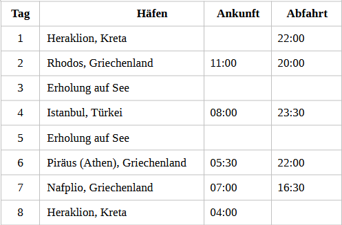 Kreuzfahrt Vielfalt des Östlichen Mittelmeers: Heraklion (Kreta), Insel Rhodos, Istanbul (Türkei), Thessaloniki (Griechenland), Piräus (Athen), Nafplio (Griechenland), Heraklion (Kreta)