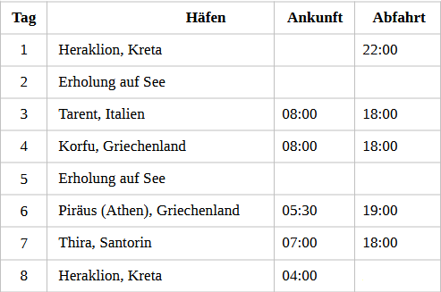 Kreuzfahrt Vielfalt des östlichen Mittelmeers: Heraklion (Kreta), Tarent (Italien), Insel Korfu, Athen (Griechenland), Insel Santorin, Heraklion (Kreta)