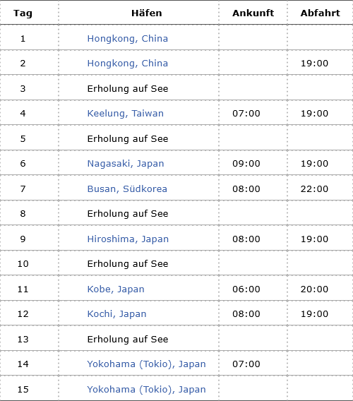 Kreuzfahrt Japans große Schätze: Hongkong (China), Keelung (Taiwan), Nagasaki (Japan), Busan (Südkorea), Hiroshima (Japan), Kobe (Japan), Kochi (Japan), Yokohama-Tokio (Japan)