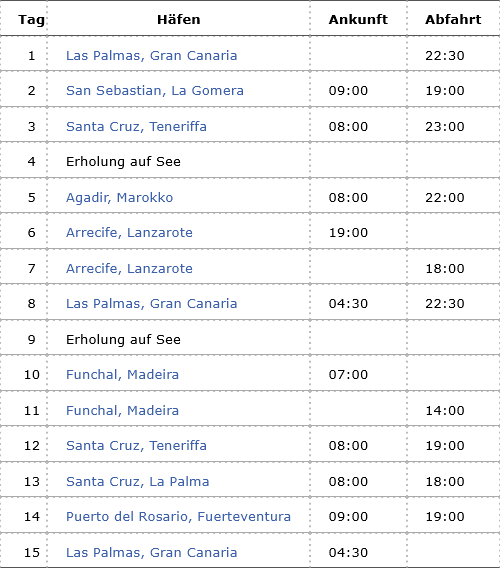 Kreuzfahrt Kanaren, Madeira und marokkanisches Flair: Gran Canaria, La Gomera, Teneriffa, Agadir (Marokko), Lanzarote, Gran Canaria, Madeira, Teneriffa, La Palma, Fuerteventura, Gran Canaria