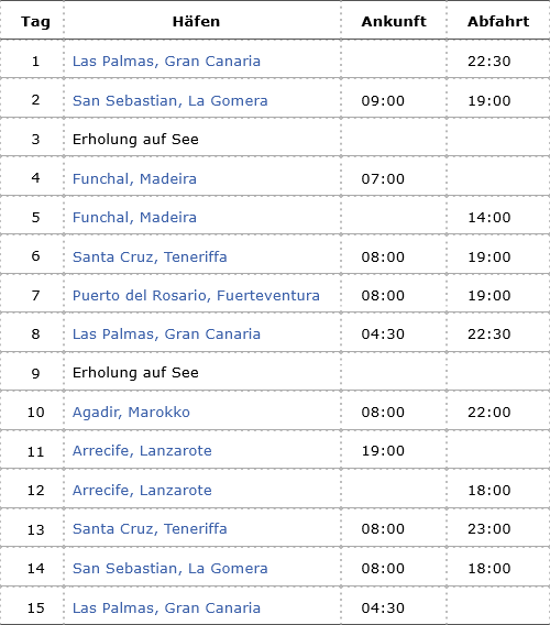 Kreuzfahrt Kanaren, Madeira und Marokko: Gran Canaria, La Gomera, Madeira, Teneriffa, Fuerteventura, Gran Canaria, Agadir (Marokko), Lanzarote, Teneriffa, La Gomera, Gran Canaria