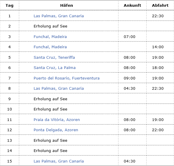 Kreuzfahrt Kanaren mit Azoren und Madeira: Gran Canaria, Madeira, Teneriffa, La Palma, Fuerteventura, Gran Canaria, Praia da Vitoria (Azoren), Ponta Delgada (Azoren), Gran Canaria