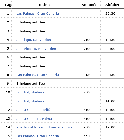 Kreuzfahrt Kanaren mit Kapverden: Las Palmas (Gran Canaria), Santiago (Kapverden), Sao Vicente (Kapverden), Las Palmas (Gran Canaria), Madeira, Teneriffa, La Palma, Fuerteventura, Las Palmas (Gran Canaria)