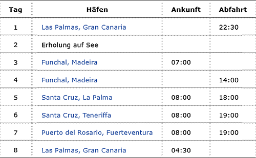 Kreuzfahrt Kanaren mit Madeira: Las Palmas (Gran Canaria), Madeira, La Palma, Teneriffa, Fuerteventura, Gran Canaria