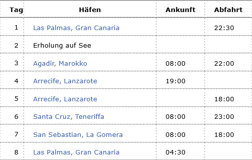 Kreuzfahrt Kanaren mit Marokko: Las Palmas (Gran Canaria), Agadir (Marokko), Lanzarote, Teneriffa, La Gomera, Las Palmas (Gran Canaria)