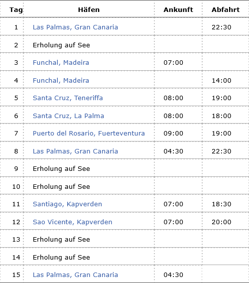 Kreuzfahrt Kanaren und Kapverden: Las Palmas (Gran Canaria), Madeira, Teneriffa, La Palma, Fuerteventura, Las Palmas (Gran Canaria), Santiago (Kapverden), Sao Vicente (Kapverden), Las Palmas (Gran Canaria)