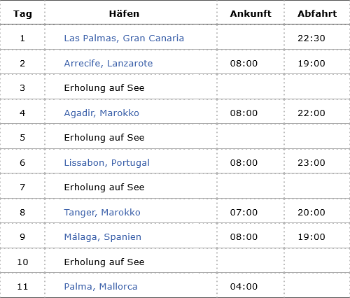 Kreuzfahrt Marokko und die Südspitze Europas: Gran Canaria, Lanzarote, Agadir (Marokko), Lissabon (Portugal), Tanger (Marokko), Malaga (Spanien), Palma de Mallorca