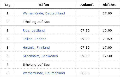 Kreuzfahrt Metropolen der Ostsee: Warnemünde, Riga (Lettland), Tallinn (Estland), Helsinki (Finnland), Stockholm (Schweden), Warnemünde