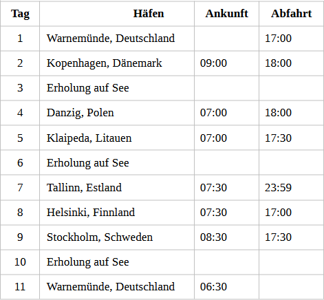 Kreuzfahrt Sommerträume in der Ostsee: Warnemünde, Kopenhagen (Dänemark), Danzig (Polen), Klaipeda (Litauen), Tallinn (Estland), Helsinki (Finnland), Stockholm (Schweden), Warnemünde