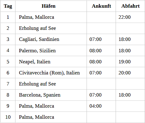 Kreuzfahrt Italiens Sonnenseiten - Mittelmeer: Palma de Mallorca, Cagliari (Sardinien), Palermo (Sizilien), Neapel (Italien), Civitavecchia (Rom), Barcelona (Spanien), Palma de Mallorca