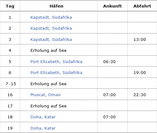 Kreuzfahrt Wildes Südafrika und Orient: Kapstadt (Südafrika), Port Elizabeth (Südafrika), Muscat (Oman), Doha (Katar)