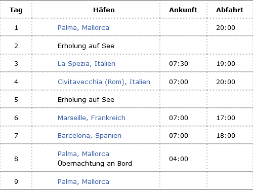 Kreuzfahrt Höhepunkte des Westlichen Mittelmeers: Mallorca, Civitavecchia-Rom (Italien), La Spezia (Italien), Marseille (Frankreich), Barcelona (Spanien), Mallorca